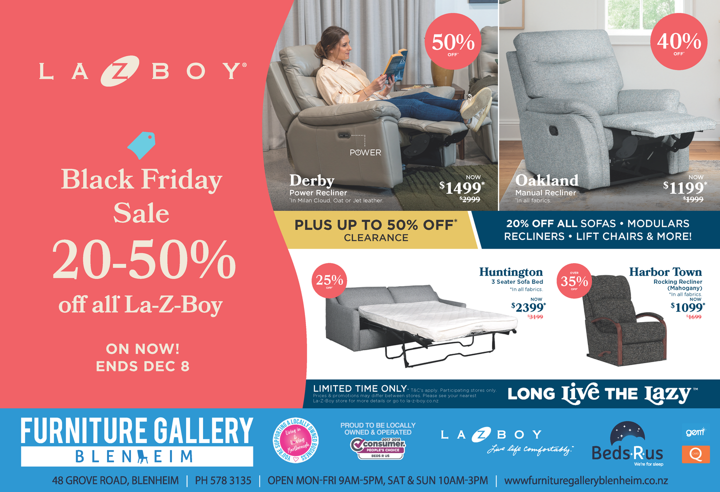 Here are our latest promotions on in-store, Furniture Gallery Blenheim, La-Z-Boy Gallery Blenheim and Beds R Us Blenheim. We will be happy to help!